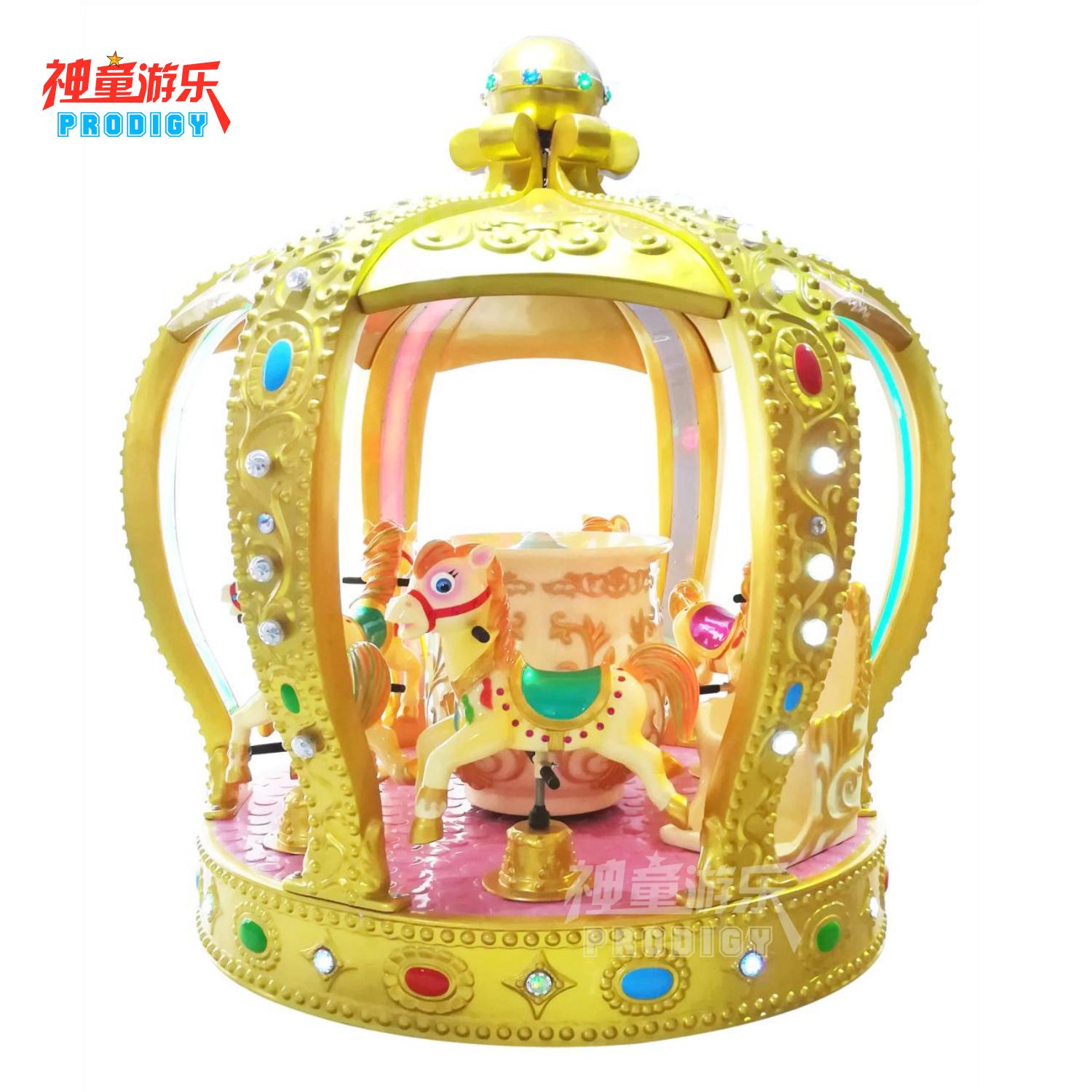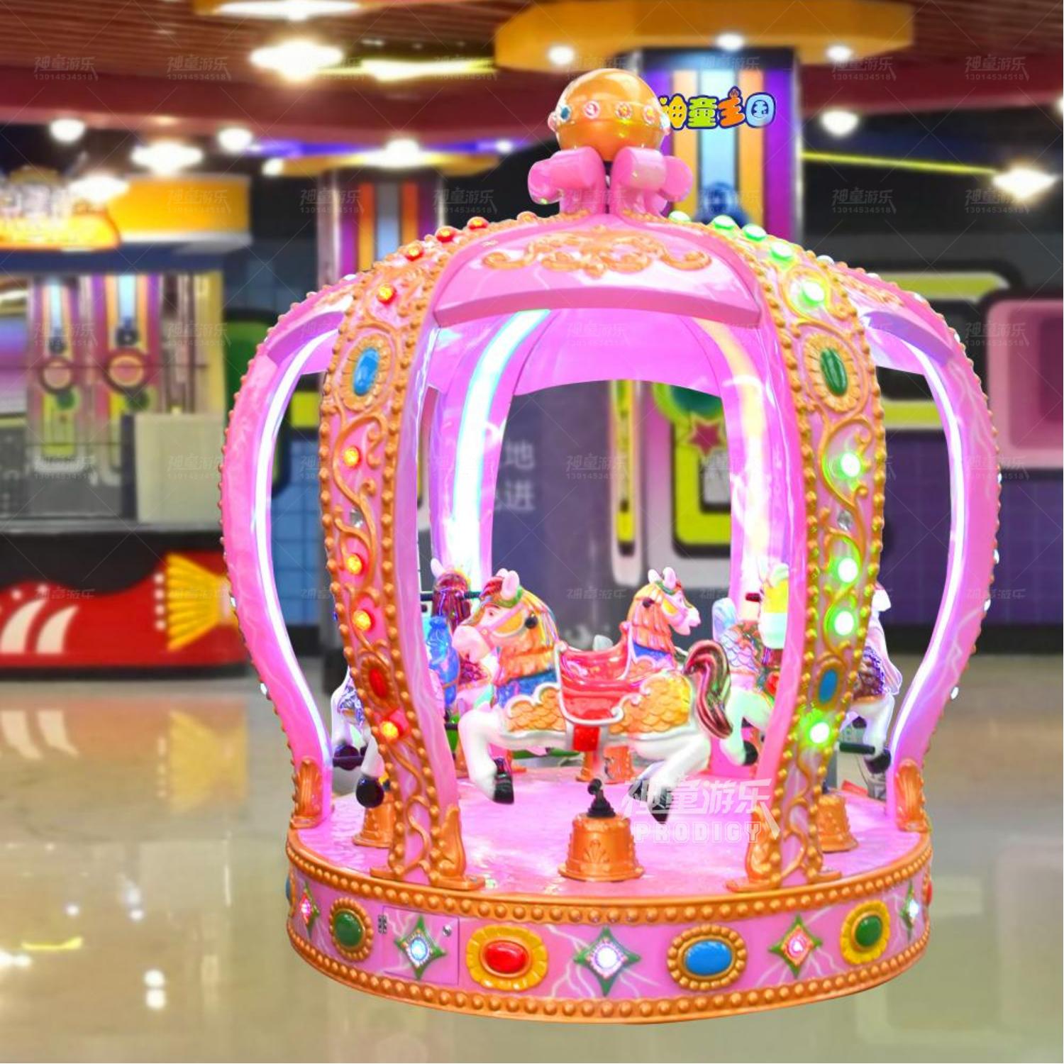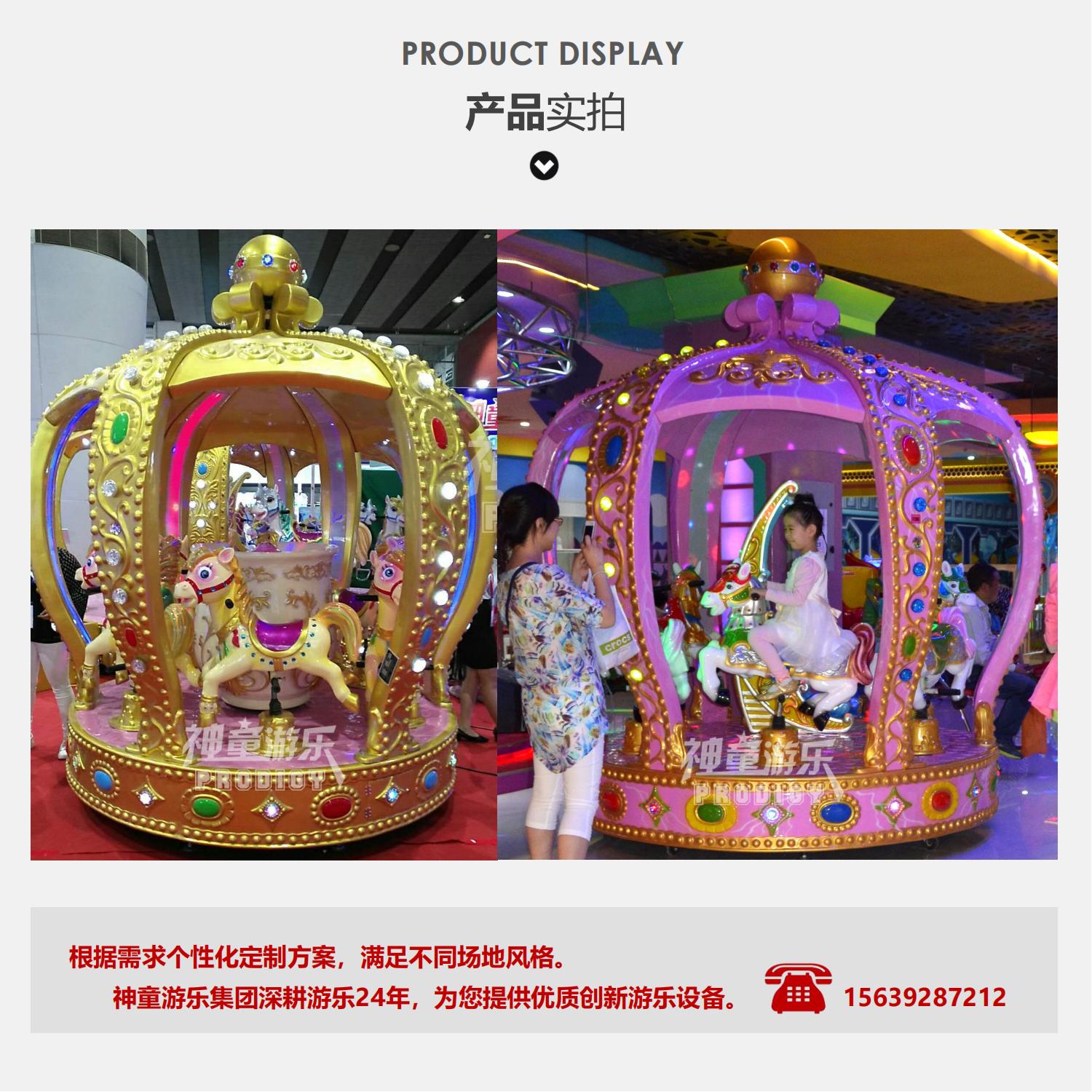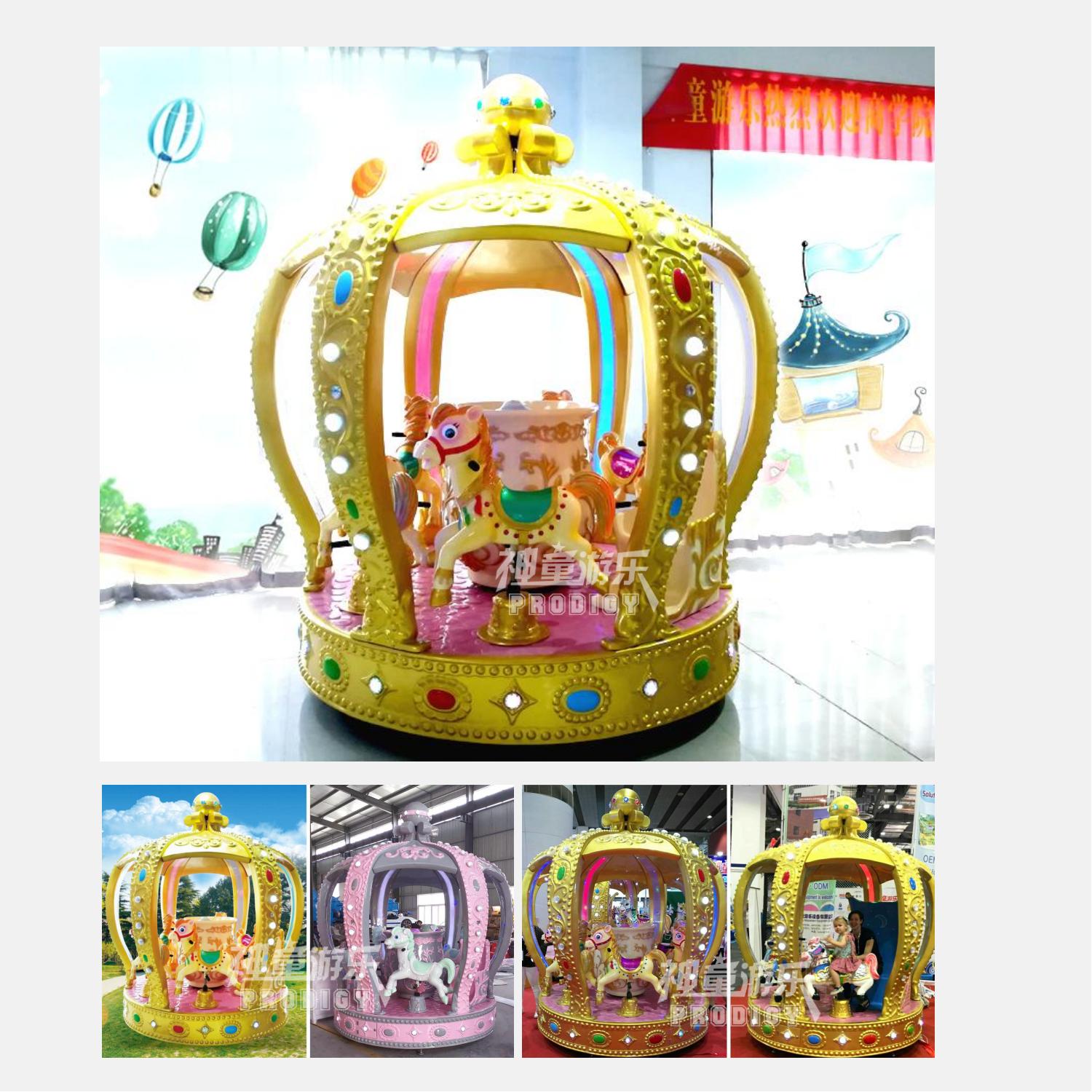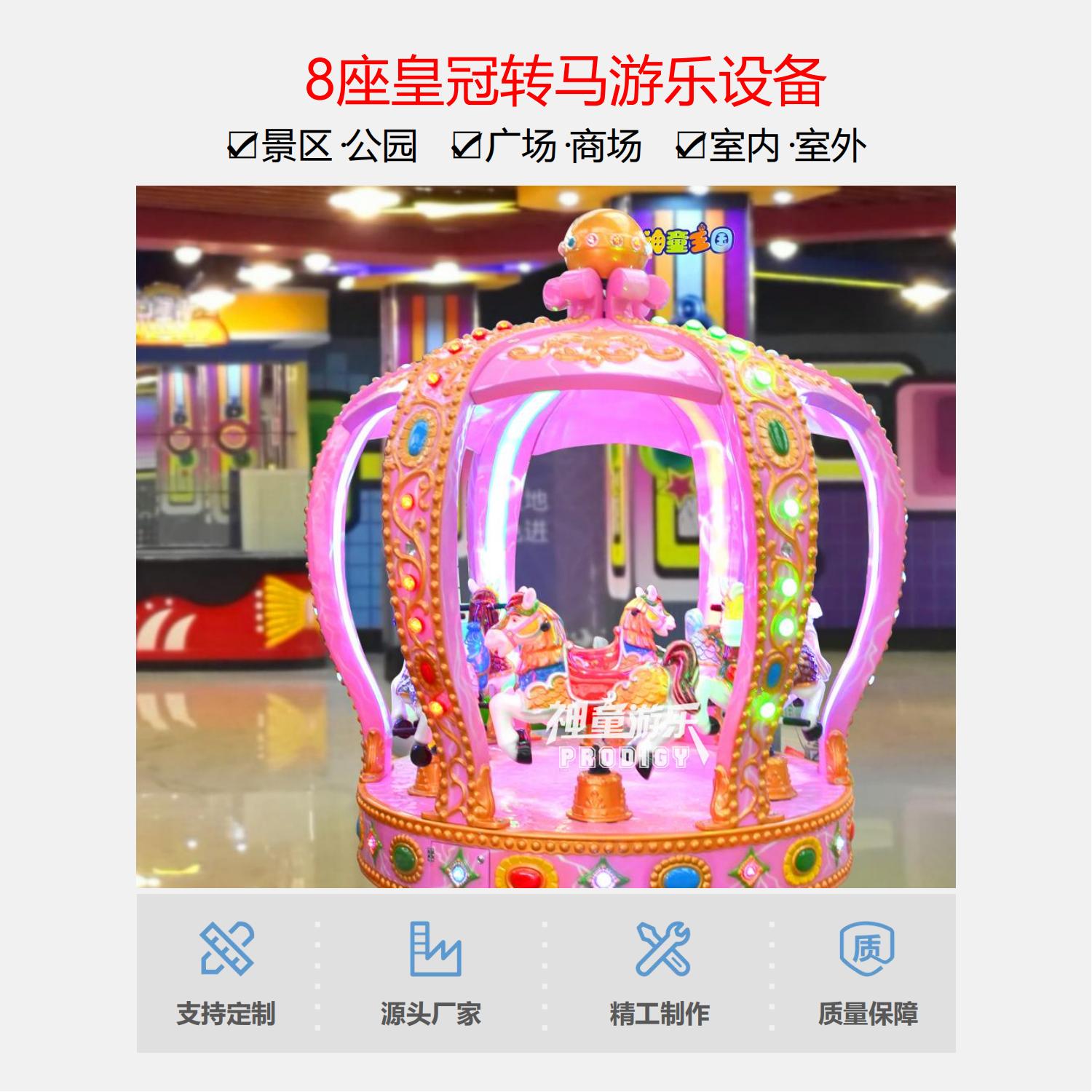 8座皇冠轉馬馬是由轉盤勻速轉動,實現轉盤上以馬為主題的乘騎作旋轉運動,乃是鄭州神童游樂設備有限公司的專利產品。兒童游樂設備皇冠轉馬以舒緩的旋轉速度和柔和的跳躍幅度,征服了萬眾游客,因此也成了游樂設備中的經典,也是從事游樂行業選購的熱門項目之一。8座皇冠轉馬不但性能優異,操作簡單,而且以新穎的造型、華麗迷人的彩燈裝飾,逼真刺激的空戰音響效果,深受兒童喜愛。
