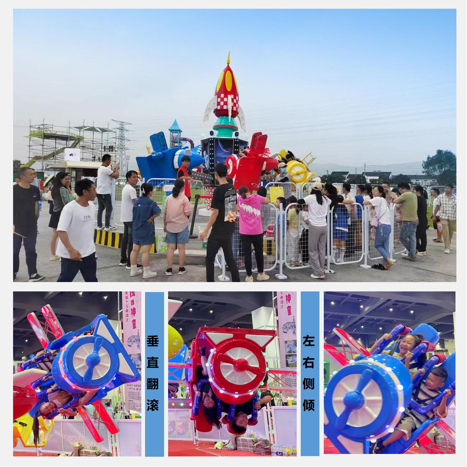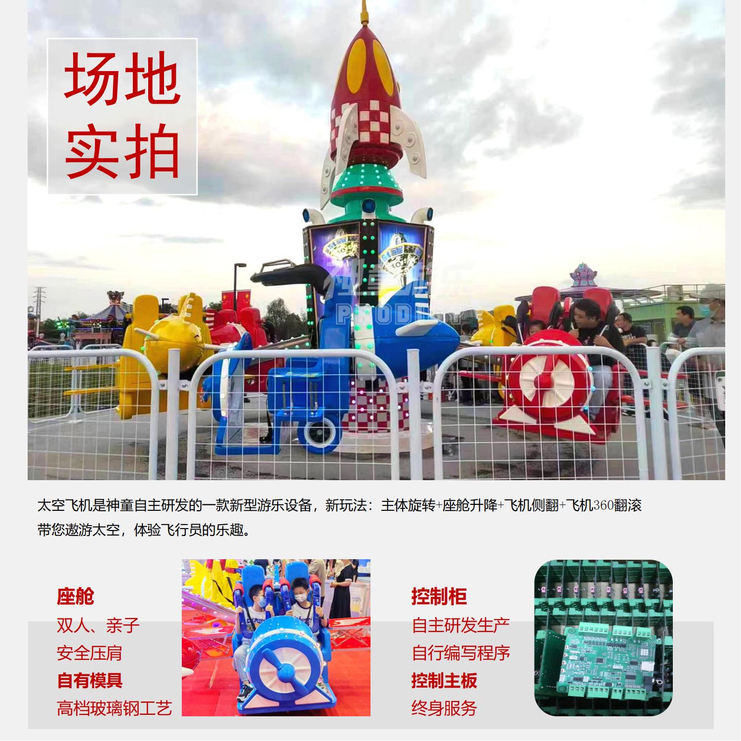 太空飛機(jī)是神童自主研發(fā)的一款新型游樂設(shè)備,新玩法:主體旋轉(zhuǎn)+座艙升降+飛機(jī)側(cè)翻+飛機(jī)360翻滾帶您遨游太空,體驗(yàn)飛行員的樂趣。